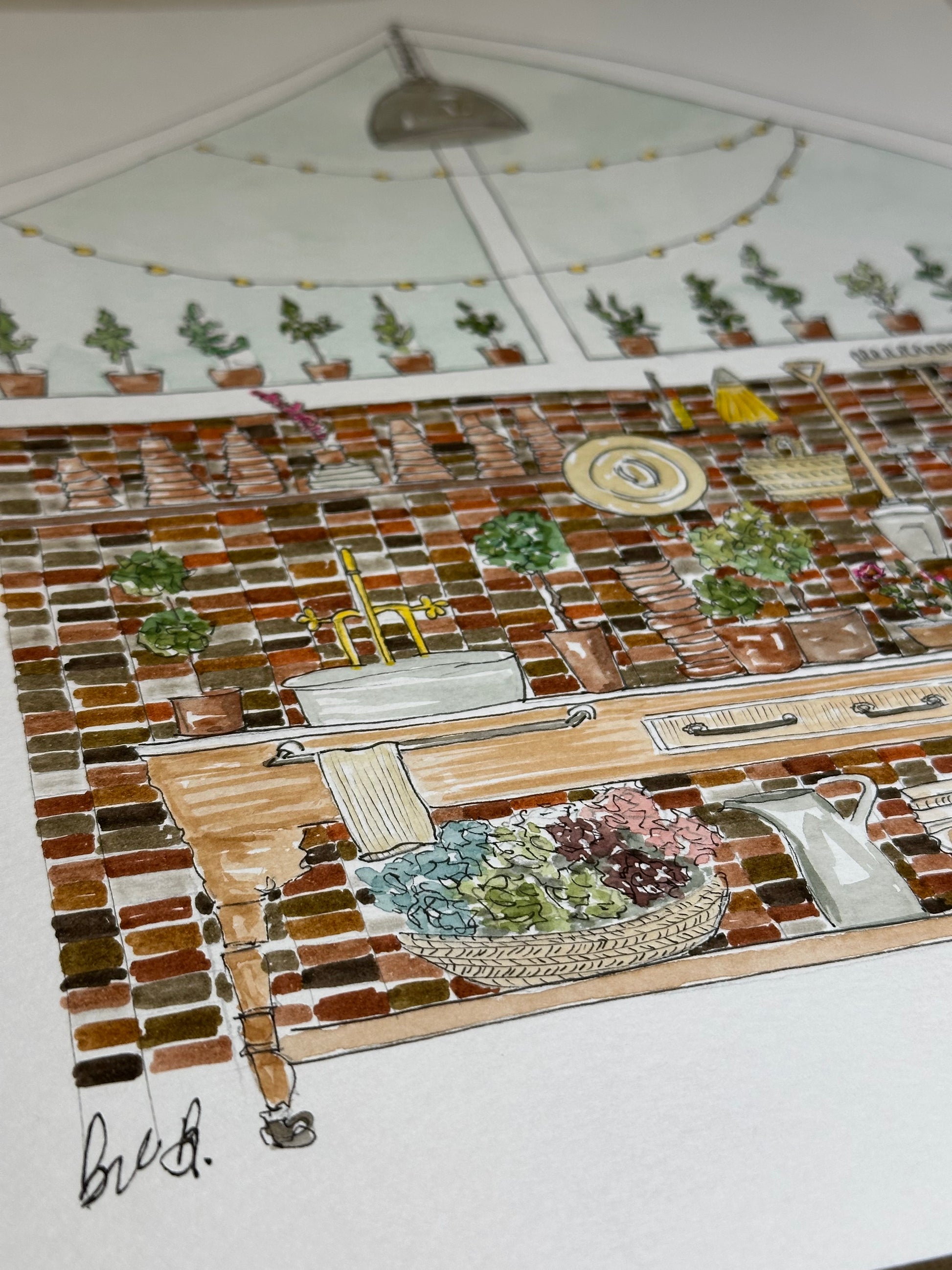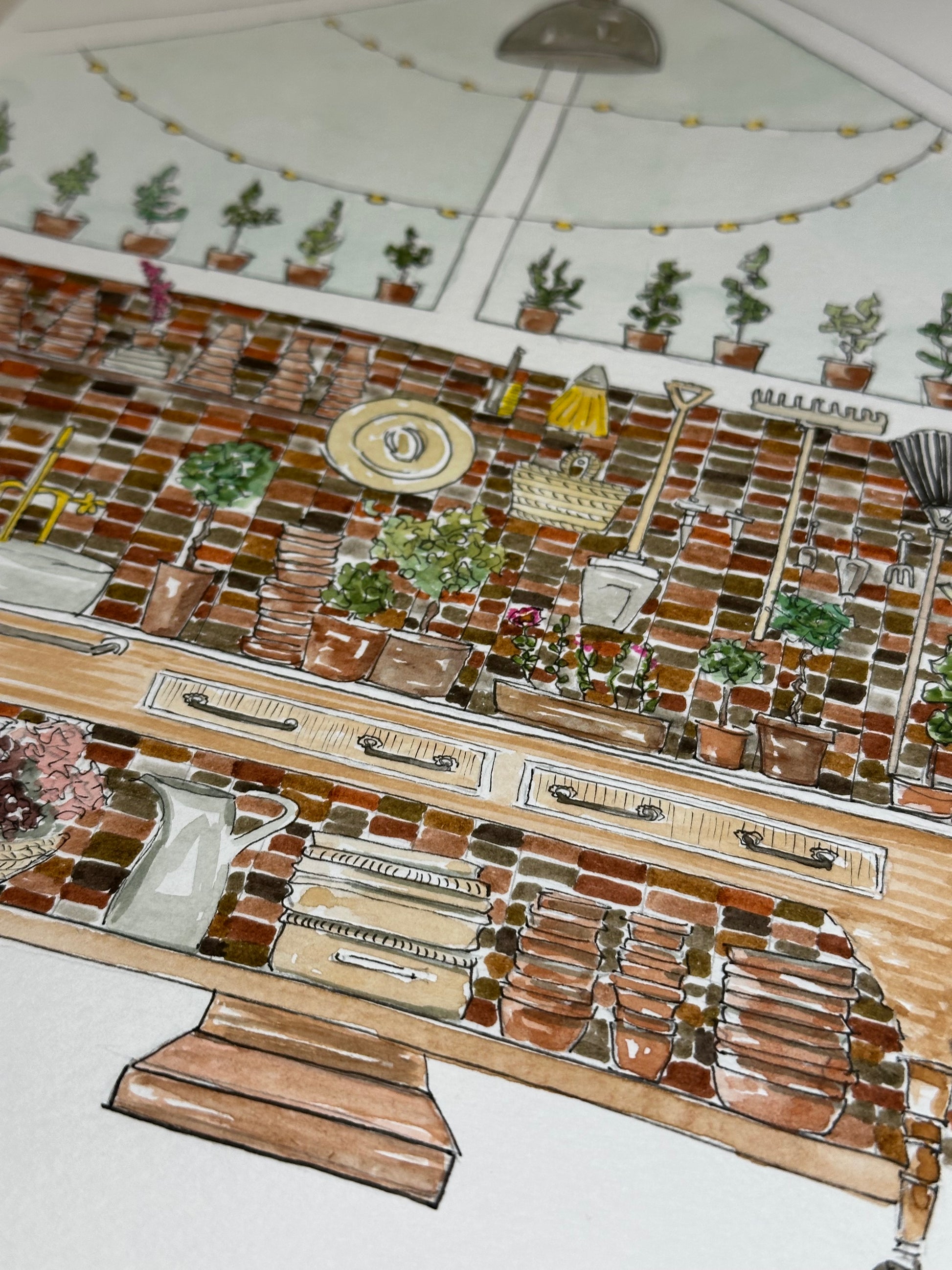 A original, a unique freehand illustration of a greenhouse potting shed. For the love of gardening. This is painted on 9x12”white acid free watercolor paper ready to be framed. Ships flat via USPS with tracking.